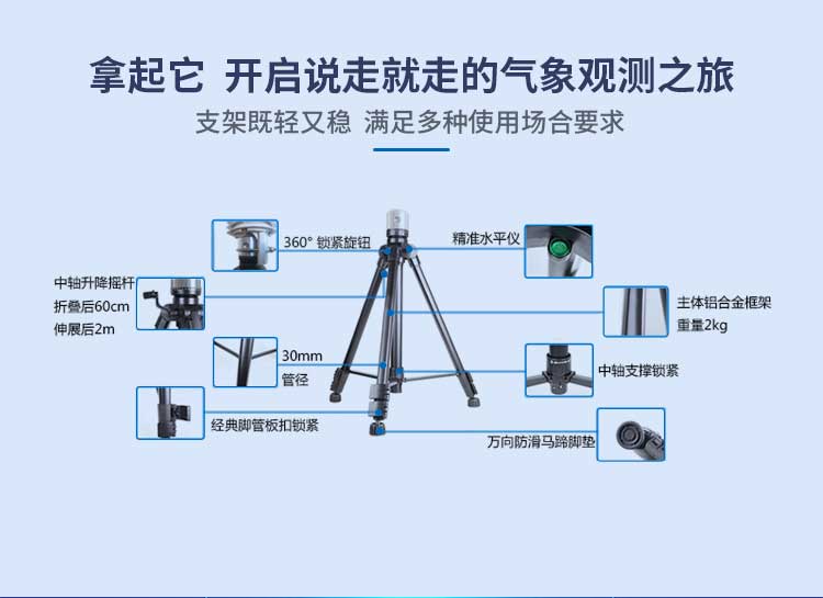 便攜式自動氣象站是一款便于攜帶,使用方便,測量精度高,集成多項氣象要素的可移動觀測系統(tǒng)。該系統(tǒng)采用新型一體化結(jié)構(gòu)設(shè)計,做工精良,可采集溫度、濕度、風(fēng)向、風(fēng)速、太陽輻射、雨量、氣壓、光照度、土壤溫度、土壤濕度、露點等多項信息并做公告和趨勢分析,該系統(tǒng)分有線站和無線站兩種形式,配合軟件更可以實現(xiàn)網(wǎng)絡(luò)遠(yuǎn)程數(shù)據(jù)傳輸和網(wǎng)絡(luò)實時氣象狀況監(jiān)測,是一款性價比突出的小型自動氣象站。