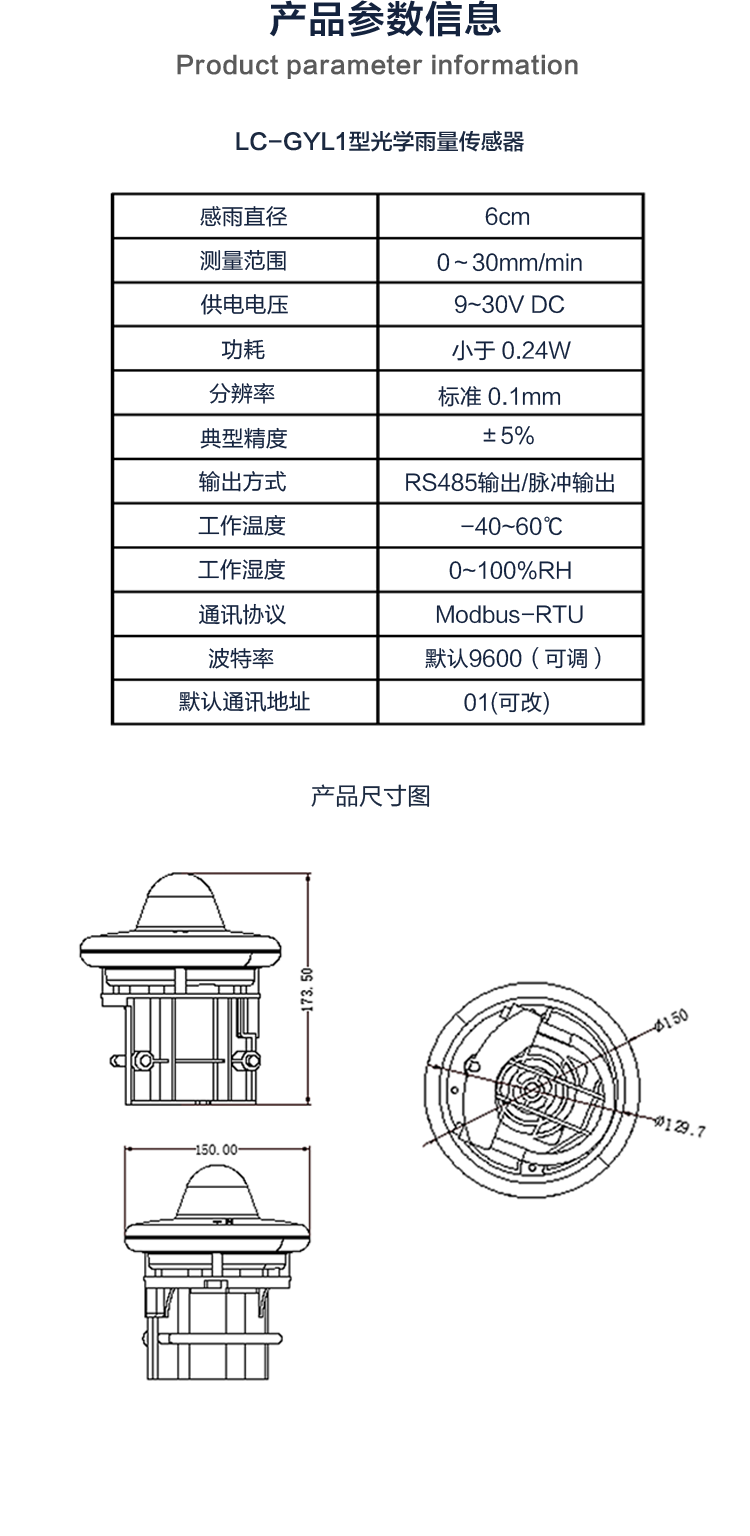 LC-GYL1光學(xué)雨量傳感器是一種通過(guò)高精度光學(xué)元件感知雨滴的密度和速度,實(shí)現(xiàn)實(shí)時(shí)、準(zhǔn)確的降雨量監(jiān)測(cè)傳感器。內(nèi)置多個(gè)光學(xué)探頭,結(jié)合可靠的遙測(cè)算法,使得傳感器在測(cè)量降雨量時(shí)表現(xiàn)出色,其靈敏度相較于傳統(tǒng)翻斗式雨量計(jì)提高了100倍。此外,該傳感器還具有長(zhǎng)壽命、低功耗設(shè)計(jì),以及免維護(hù)的特點(diǎn),使得其在各種惡劣環(huán)境下都能穩(wěn)定運(yùn)行。廣泛應(yīng)用于惡劣環(huán)境下的自動(dòng)雨量監(jiān)測(cè)。在暴雨、山洪、泥石流等災(zāi)害性降水天氣的自動(dòng)監(jiān)測(cè)、預(yù)警中起著關(guān)鍵作用。