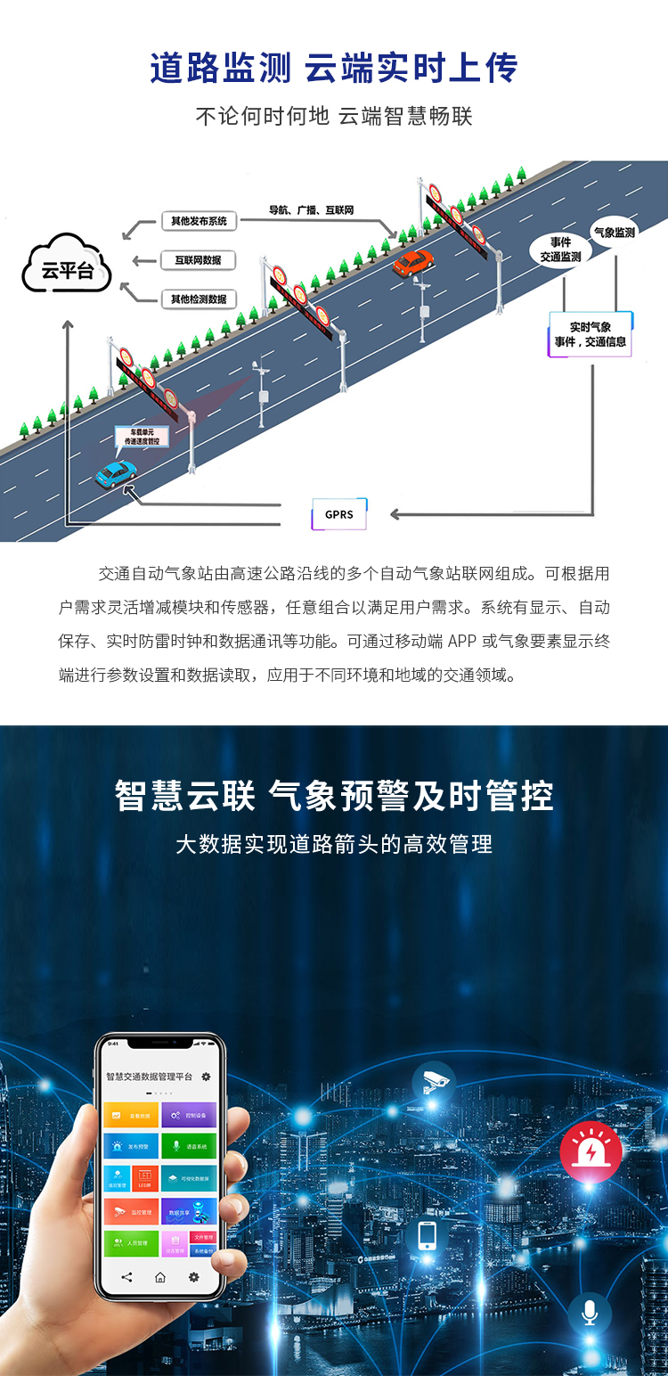 交通氣象站集實時監(jiān)測、精準(zhǔn)預(yù)報、快速響應(yīng)于一體,專為各類交通環(huán)境量身定制。無論您是駕駛在高速公路、山區(qū)、還是沿海地區(qū),交通氣象站都能提供準(zhǔn)確的氣象數(shù)據(jù),包括風(fēng)速、風(fēng)向、溫度、濕度、降水量、能見度等關(guān)鍵信息,幫助您及時了解路況,做出安全決策。適用于各類交通管理部門、氣象部門、以及廣大駕駛員,確保您的行程安全無憂。