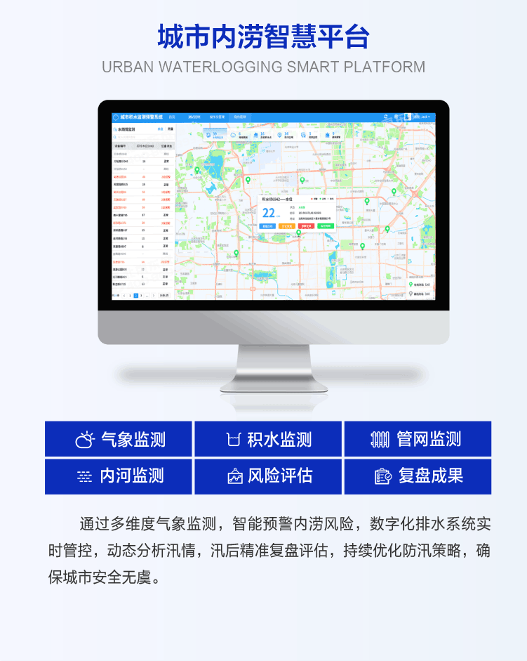 城市內(nèi)澇預(yù)警監(jiān)測系統(tǒng)是一款集成了先進傳感器技術(shù)、數(shù)據(jù)采集與分析、遠程監(jiān)測等功能的智能化系統(tǒng)。該系統(tǒng)通過在城市關(guān)鍵區(qū)域部署水位傳感器、雨量傳感器等設(shè)備,能夠?qū)崟r監(jiān)測和評估城市內(nèi)澇積水情況。通過城市內(nèi)澇預(yù)警監(jiān)測系統(tǒng),城市管理部門能夠全面掌握內(nèi)澇積水情況,提高防洪能力和災(zāi)害應(yīng)對效率,確保市民生命財產(chǎn)安全。