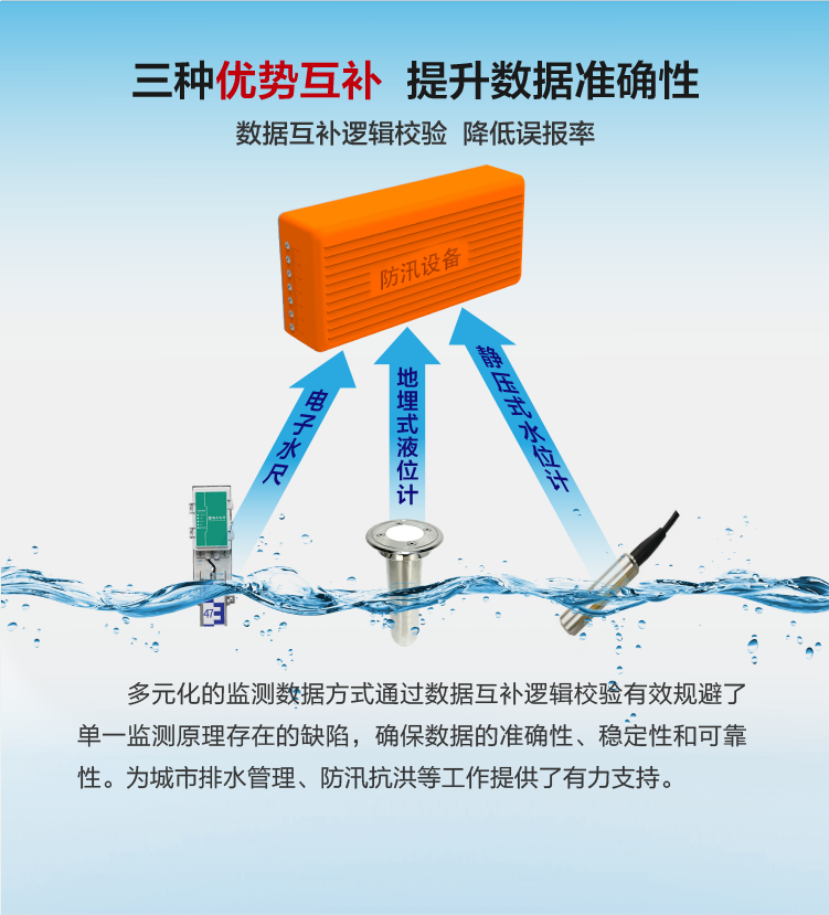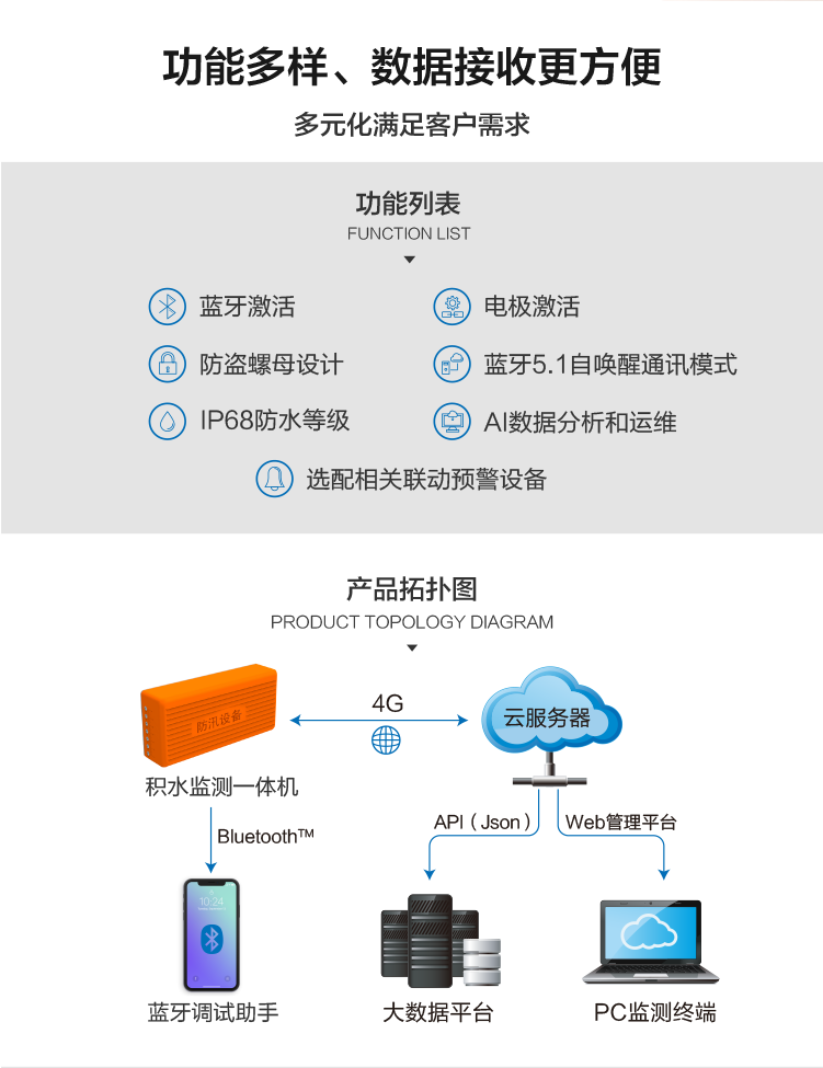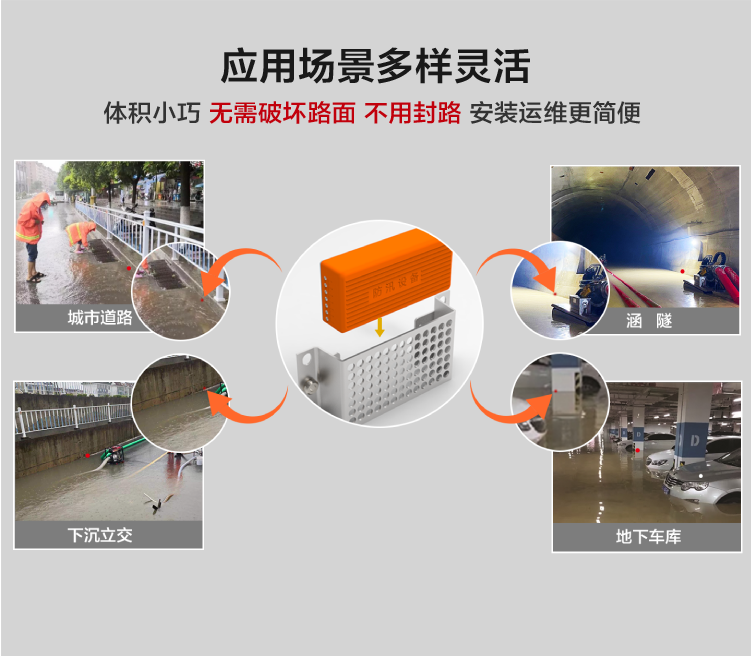 DC-JS31三合一積水監(jiān)測儀是一款針對城市道路、涵隧、下沉立交、地下車庫等安裝空間有限的場景開發(fā)的水位監(jiān)測設(shè)備。高度融合了多種微傳感、物聯(lián)網(wǎng)、移動互聯(lián)等先進(jìn)技術(shù),實現(xiàn)無需外部供電的情況下的積水探測、洪澇預(yù)警、遠(yuǎn)程控制等功能,具有體積小巧、安裝運維便捷、響應(yīng)迅速、智能化程度高、延展性好等突出優(yōu)勢。