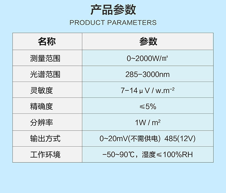 TBQ-2C-2太陽總輻射傳感器(classC)用于測(cè)量太陽輻射總量,基于熱電效應(yīng)原理轉(zhuǎn)換輻射能量為電信號(hào)。具有高精度、穩(wěn)定性、快速響應(yīng)等特點(diǎn),適用于氣象、農(nóng)業(yè)、能源等領(lǐng)域。隨著科技進(jìn)步,傳感器升級(jí)改進(jìn),實(shí)現(xiàn)更精準(zhǔn)、快速測(cè)量和遠(yuǎn)程監(jiān)控,為人類生產(chǎn)和生活帶來便利和效益。
